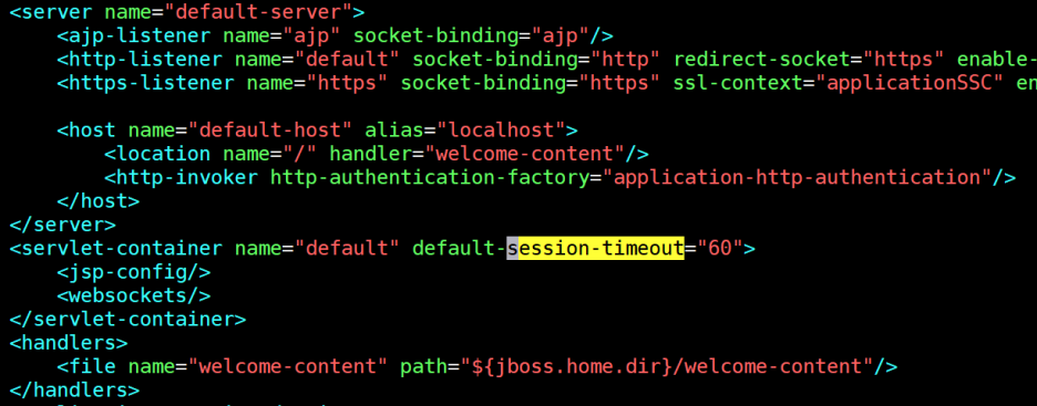 session 설정은 servlet-container에 있는데 subsystem -> undertow 하위에 위치합니다.
