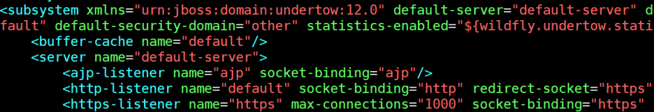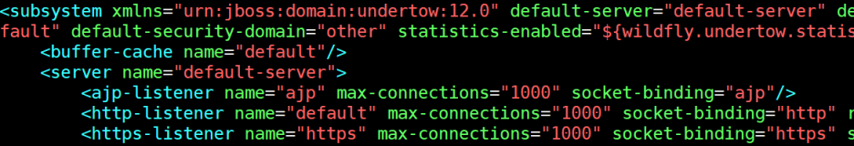 접속과 같은 서버에 대한 설정은 subsystem/undertow 에서 설정이 가능합니다.