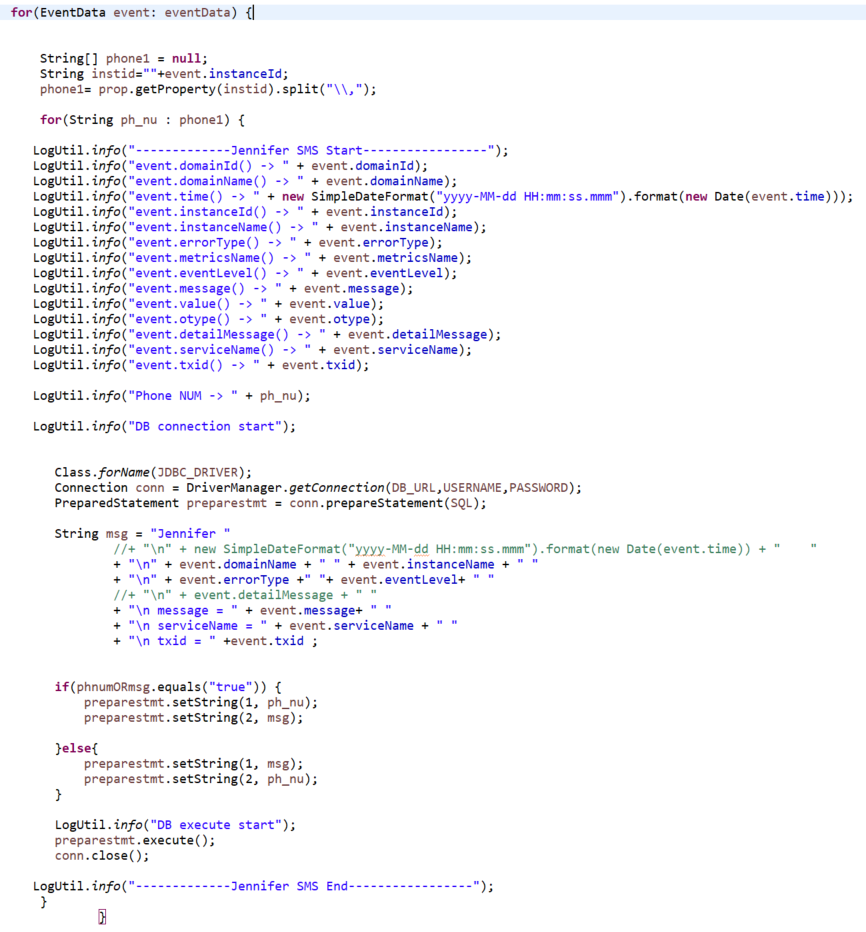 -. jennifer event 발생시 EventData[] eventdata를 가져옵니다.