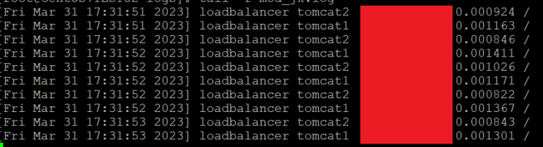 설정 반영 후 apache를 호출할 시 tomcat1, tomcat2로 요청이 분배되어 넘어가는 것을 확인이 가능합니다